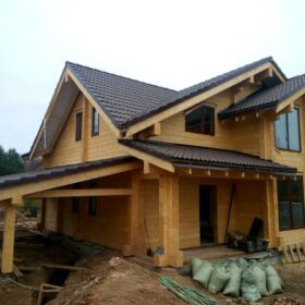 На сегодняшний день всем нам привычный сруб уже отошёл на задний план по популярности, вместо него больше применяют профилированный или строганый и клееный брус для строительства. Такие постройки именуют уже не просто «деревянные дома», а «дома из бруса». Клееный брус наверное самый технологичный материал в строительстве из древесины — он изготавливается путём склеивания между собой нескольких ламелей с разной структурой. Клееный брус стоит ощутимо дороже обычного, но зато он может похвастаться своей стойкостью и долговечностью. Также он может быть любой длины. По сути ограничения зависят лишь от длины транспорта, на котором будут перевозиться данные изделия.
