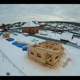 Как ни странно это звучит на первый взгляд, строительство бревенчатых домов зимой действительно оправдано благодаря целому ряду положительных моментов.