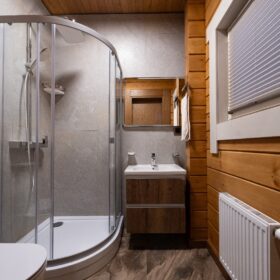 Непосредственно «банное отделение» представлено, в первую очередь моечной. Здесь находится душевая, в которой можно принять как классический, так и тропический душ.