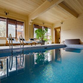 Переоценить удовольствие от купания в бассейне после банных процедур невозможно. Большие панорамные окна и льющийся свет дарят ощущение солнечного лета в любое время года.
