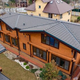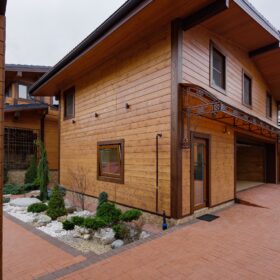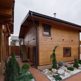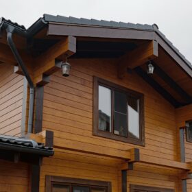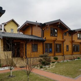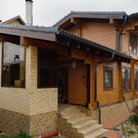 Этот проект, по праву,  является нашей гордостью. При первом знакомстве с ним сразу становится понятным,  почему. Двухэтажное красивое и добротное строение,  выполненное  из натуральных материалов,  производит солидное впечатление.