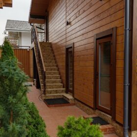 Что касается внутреннего обустройства помещений, то можно сказать, что здесь предусмотрено все условия, чтобы отдохнуть и восстановить силы. На первом это же, при входе расположилась столовая, которую с легкостью можно трансформировать в гостиную.