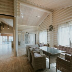 Баня из оцилиндрованного бревна по проекту Антоновка