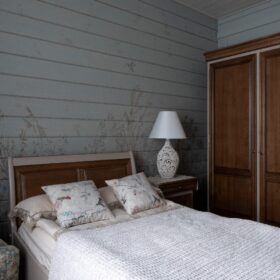 Подушки и пледы — это небольшие, но важные и весьма значимые элементы декора, способные кардинально преобразить атмосферу комнаты. Выбирайте натуральные ткани, такие как шерсть или кашемир. Яркие акценты в виде декоративных подушек с принтами, а особенно с вышивкой, станут великолепным дополнением к фону деревянного интерьера.