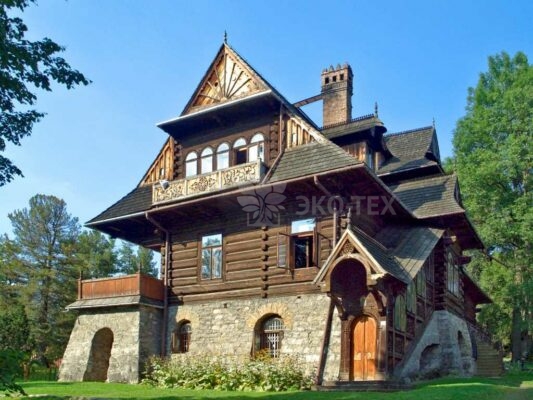 На Руси издревле из бревен возводили жилые постройки, церкви и даже крепости. Старейшее сохранившееся на сегодняшний день строение, церковь Ризоположения из с. Бородава, относится к 1485 г. Крестьянские избы рубили по принципу «в чашу» — в нижних бревнах делали углубления, на которые устанавливалась следующая кладка. Для строительства брали хвойные породы, а нижние венцы делали из лиственницы или дуба. Кровля была двускатной. Печь ставили близко к одному из окон – связано это с тем, что в старину и даже еще в XVII веке дым выходил на улицу через оконные отверстия. В XIX веке появилась домовая резьба – ставни, кровлю, балясины стали украшать ажурной резьбой и покрывать разноцветной краской. На крыше появился изящный конек. Многие усадьбы были настолько красивы, что напоминали сказочные избушки из книжек. Такие терема можно встретить в центральной части России и в Сибири до сих пор.
