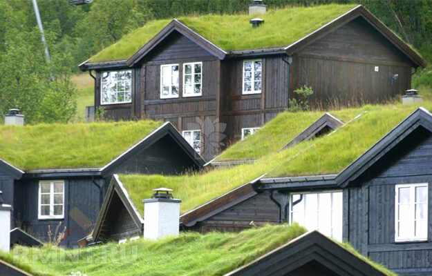 Дома с зеленой крышей в Норвегии