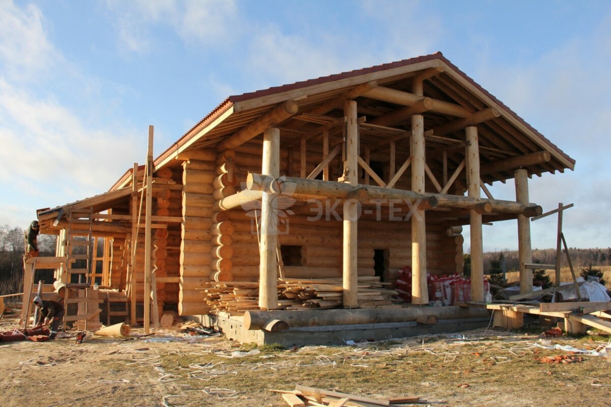 Диаметр от 40 до 60 см (может быть и больше). По своей сути этот вариант ни чем не отличается от предыдущего, кроме цены за материал. Причина в том, что выбирают больший диаметр, потому что, чем больше диаметр стенового бревна, тем лучше сохраняется тепло, тем экономичней будет отопление, ну и масштабность, монументальность строения, а соответственно престижность и солидность такого деревянного дома конечно выше.