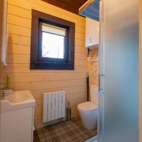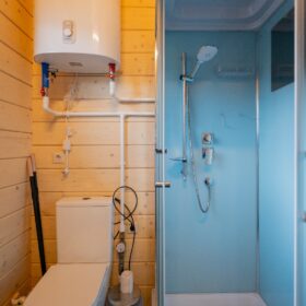 Санузел оборудован душевой кабиной и современным и водонагревателем.