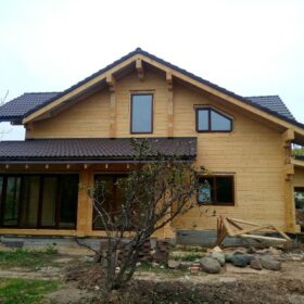 Клееный брус избавлен от этого недостатка и все дальнейшие работы можно начинать практически сразу после возведения коробки.