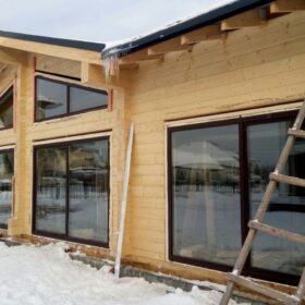 Подбор только сверхвысококлассных специалистов для установки окон и дверей. Требуется огромное мастерство от работников, которые будут учитывать усадку конструкций, иначе через пару лет появятся зазоры возле окон, поведет косяки и могут появиться иные проблемы. В случае использования для строительства деревянного дома клееного бруса все намного проще — стеновой комплект уже размечен, изготовлен и подогнан в момент производства.