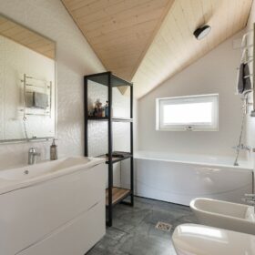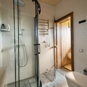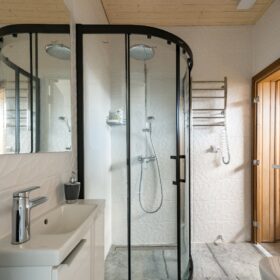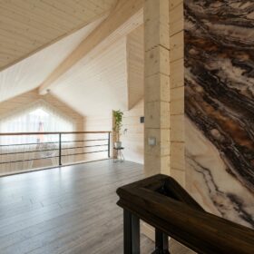 Поднимаясь наверх, мы обнаруживаем здесь три жилые комнаты, которые могут быть как спальнями, так и комнатами для детей. Если вы предпочитаете тишину и уединение, то второй этаж — идеальное место для вашего рабочего кабинета.