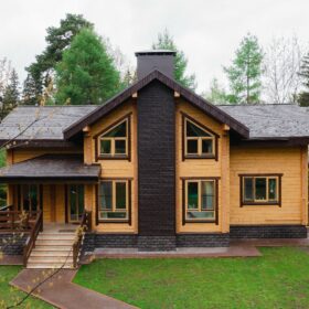 За счёт того, что профиль клеёного бруса имеет идеальную геометрию, коттедж выглядит фактурно и красиво.