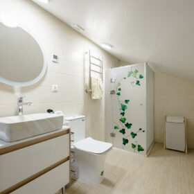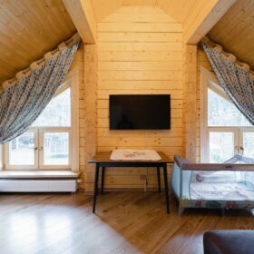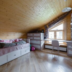 Галерея объединяет три комнаты — спальни различной площади. Две боковые комнаты имеют собственные гардеробные. На втором этаже имеется отдельный санузел.