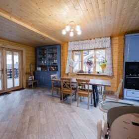 Кухня-столовая – это современное решение, которое отличается практичностью и удобством. В тёплое время года примыкающую столовой террасу можно превратить в гостиную на открытом воздухе.