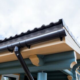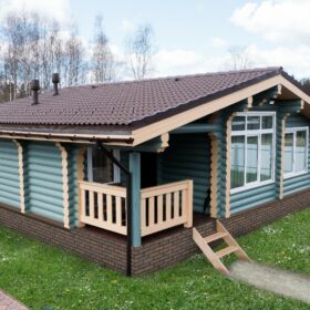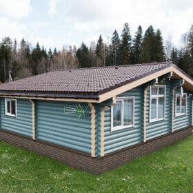 Нарядный и привлекательный коттедж идеально вписывается окружающий ландшафт за счёт естественных оттенков стен и крыши. Белоснежные срезы венцов являются настоящим украшением фасада и предают облику дома неповторимое очарование.