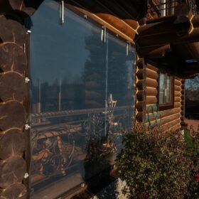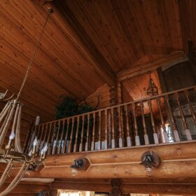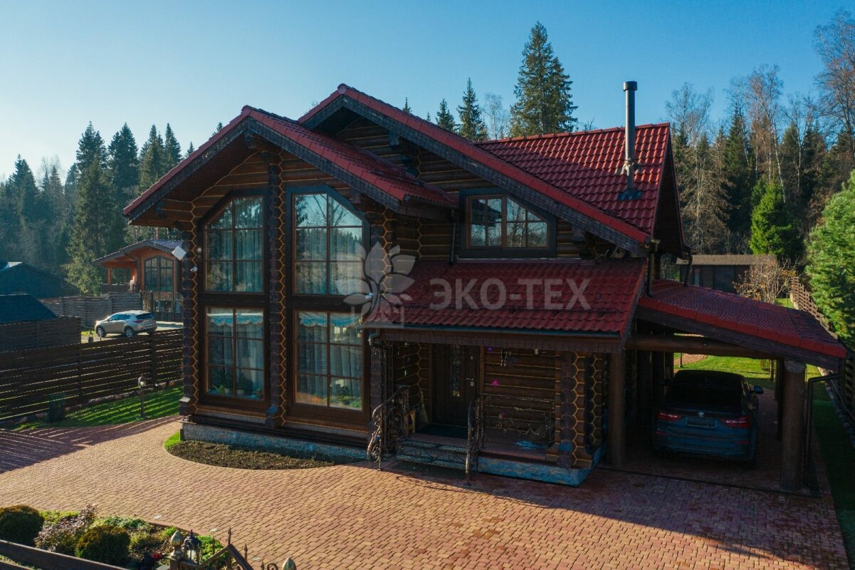 Двухэтажный дом с террасой, балконом, материал оцилиндрованное бревно