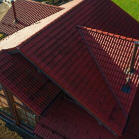 Благородная роскошь огромных окон второго света наполняет облик торжественностью. нарядные колонны и части венцов создают ощущение царских палат, а застеклённая терраса достойно завершает аристократический облик дома. Многоуровневая крыша гармонично и красиво дополняет особняк.