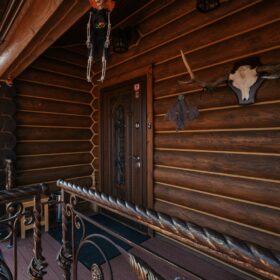 Изумительной красоты дом с резным крылечком, наличниками и узорными слегами