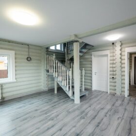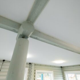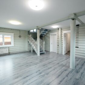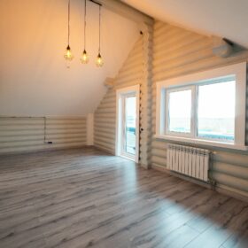 Коттедж построен из оцилиндрованных бревен, полученных при переработке архангельской сосны. Брёвна имеют идеальную калибровку, это достигается за счёт того, что мы, имея собственное производство, используем при обработке стволов высокоточные станки.