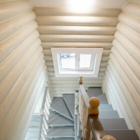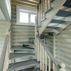 Аккуратный двухэтажный коттедж, из оцилиндрованного бревна, общей площадью 143 квадратных метра, влюбляет в себя с первого взгляда. Кажется, что идеальная форма сруба украшена ажурными сияющими кружевами, при этом, дом имеет неповторимый и современный облик.