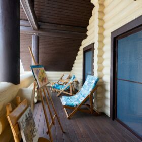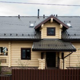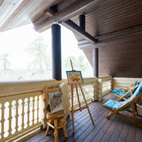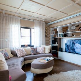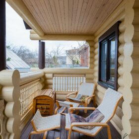 Современная внутренняя отделка выполнена нашими дизайнерами по авторским проектам, оцилиндрованное бревно высочайшего качества мы изготавливаем на наших производственной площадке в Архангельской области.