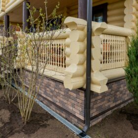 Роскошный классический стиль русского терема прекрасно сочетается с каменным фундаментом, который обеспечивает дома полную защиту от грунтовых вод и подтопления.