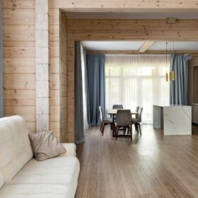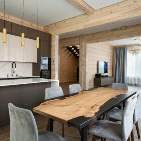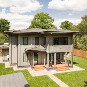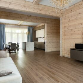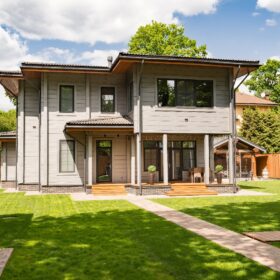 Уют, комфорт и естественная красота окружают владельца роскошного элитного коттеджа, построенного по проекту «Новомещёрский». Этот особняк сочетает в себе элегантность, созданную идеальной геометрией клеёного бруса, с величием и благородством.