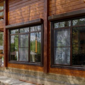 Панорамные окна второго этажа близки по исполнению и масштабу ко «второму свету», который всегда наполняет дом величием и подчеркивает игру света.