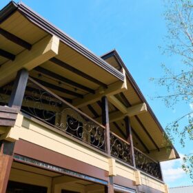 Роскошь и элегантность, утончённый аристократизм и полное слияние с природой — эти определения рождаются сами собой, при первом взгляде на просторный двухэтажный особняк с большим балконом и террасой, который построен по проекту Верея.