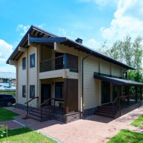 Двухэтажный солидный дом для большой семьи, материал клееный брус