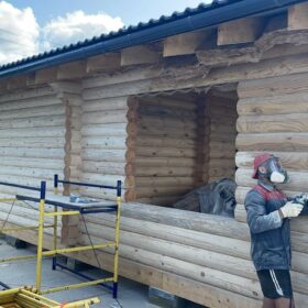 Кроме того, наша команда активно занимается шлифовкой дома «Клин» из оцилиндрованного бревна. Этот этап работы позволяет создать идеально гладкую поверхность и придать дому эстетическую привлекательность.