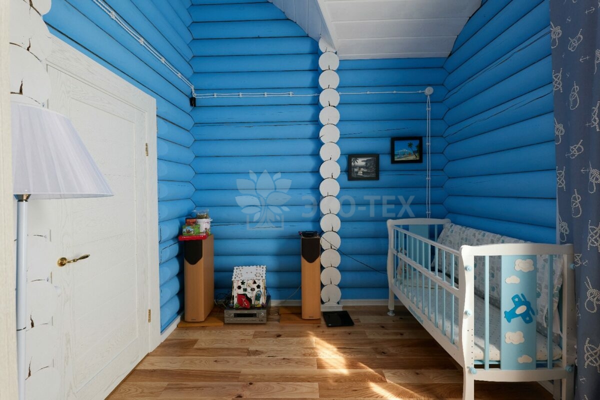 В деревянном доме есть неоспоримый плюс: об экологичности пространства здесь позаботились ещё на этапе строительства, и хотя стены, практически, не требуют дополнительной отделки, здесь всегда должна быть возможность их очистки и чем младше ребёнок, тем чаще рекомендуется делать эту процедуру.