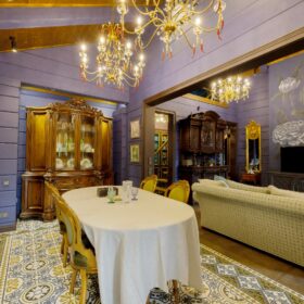 Фиолетовый цвет, особенно насыщенный, вызывает в восприятие интерьера некоторую тяжесть, поэтому он хорошо смотрится в сочетании с другими цветами. Удачным вариантом будет дополнить фиолетовый цвет, к примеру, зелёными оттенками.