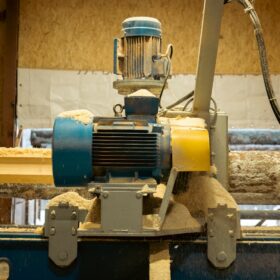 • Бревно на станке неподвижно фиксируется с обеих сторон, выставляется диаметр, запускается проход фрезы вдоль ствола.