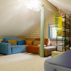 Третье зона — игровая. Игровой уголок хорошо снабдить модульной мебелью, из которой ребёнок с удовольствием сможет соорудить себе и крепость, и сказочную пещеру.