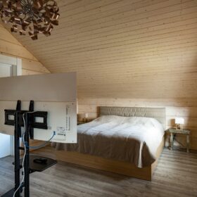 Оптимальный размер спальни — от 14 до 20 квадратных метров. Это обеспечит достаточное место для кровати, шкафов и, возможно, небольшого рабочего уголка.