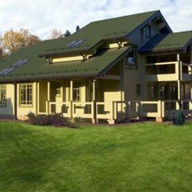 Тип применяемой кровли зависит исключительно от вкуса Заказчика и может быть любым: от мягкой до натуральной глиняной черепицы, сланца или соломы.