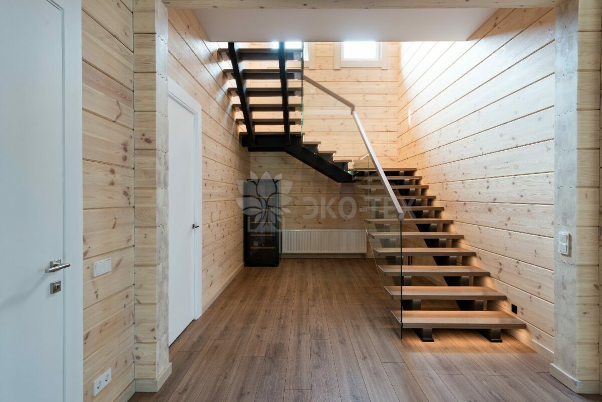 В деревянных домах, как вы понимаете, наиболее популярны лестницы из… дерева! Что, конечно же, кажется самым естественным решением. Ступени таких лестниц обычно изготавливаются из пород дерева, которые растут в наших широтах. Перед использованием они покрываются специальным защитным составом, который придает дереву прочность и долговечность.