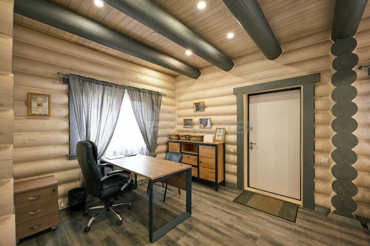 Баня с бассейном, гостиной, большой террасой из бревна.