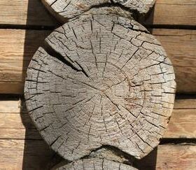 - появление трещин – они возникают после полного высыхания древесины, особенно быстро этот процесс идет в сухую и жаркую погоду. Если мелкие трещины не принесут вреда дому, то более крупные приведут к ощутимой потере тепла. Большинство трещин появляются на торцах, это очень уязвимая часть бревна. Именно поэтому торцы нуждаются в дополнительной защите специальными средствами.