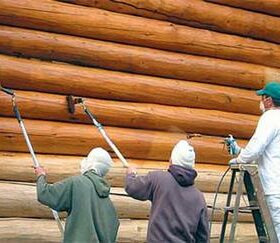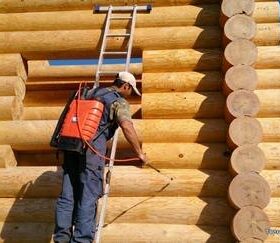 - Антисептик наносится в процессе заготовки древесины, после постройки дома необходимо примерно каждые 2-3 года обновлять защиту. Наносят антисептик несколькими слоями, для обработки стен жилого дома потребуется 4-6 циклов. Каждый новый слой наносится только после полного поглощения предыдущего средства.