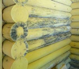 - Защита оцилиндрованного бревна от влажности начинается еще на стадии обработки. Для строительства деревянного дома необходимо, чтобы влажность бревна была на уровне 10-15%. Составы, которые создают на поверхности дерева пленку, нужно наносить периодически, так как их действие не отличается продолжительностью. Гидрофобизаторы, которые глубоко проникают в состав древесины, могут быть в виде пасты, а также в виде масляной пропитки.