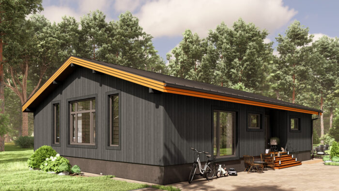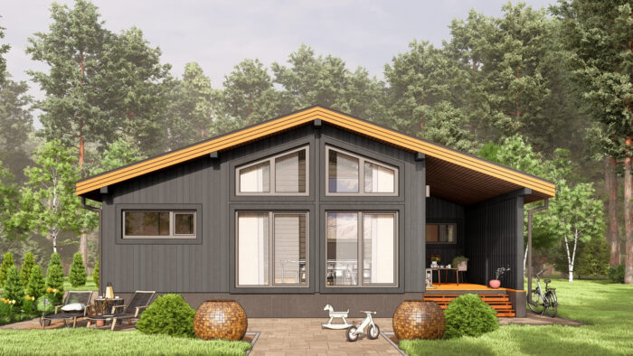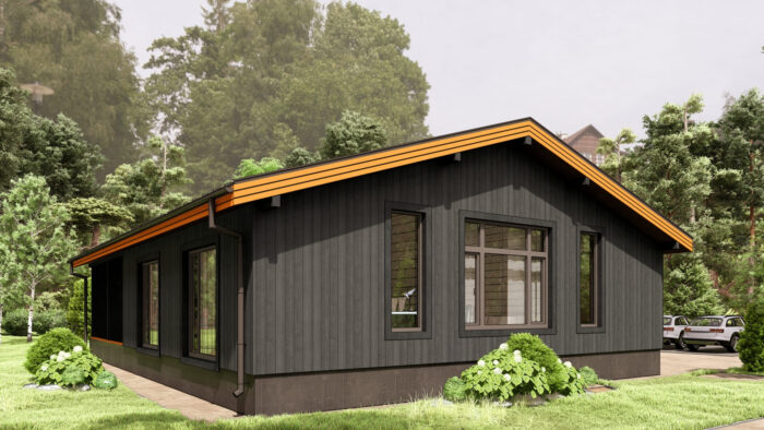 Каркасный дом для постоянного проживания c кровлей металлочерепица, отделка, окна, фундамент железобетонные сваи сечение 150*150 мм, L (длина) - 3 000 мм