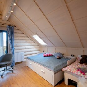 Современные деревянные дома, возводимые как из оцилиндрованного бревна, так и клееного бруса, как правило, имеют дополнительный мансардный этаж. Популярность домов с мансардой объясняется как практической, так и экономической стороной — появлением дополнительного жилого пространства на той же площади.