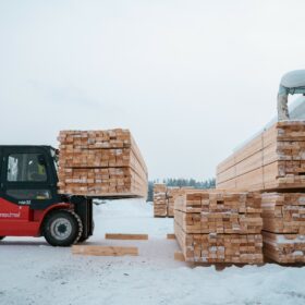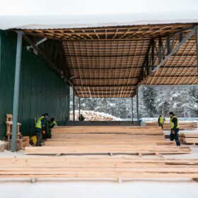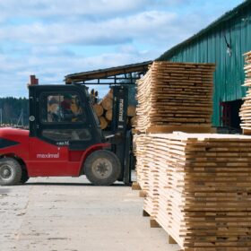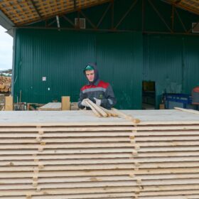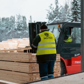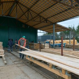 Ежемесячный выпуск продукции составляет более 10 000 м³, включая пиломатериалы, клееный брус, термодоску и другие изделия.