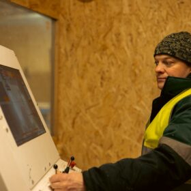 Бревно фиксируется с обеих сторон, выставляется диаметр, и фреза проходит вдоль ствола, обеспечивая идеальный диаметр по всей длине с минимальной погрешностью. После оцилиндровки заготовка поступает на транспортер, где оператор торцует ее в соответствии с проектом дома. Затем бревно помещается в чашкорез для создания чаш, которые служат для крепления конструкции. На этом этапе также происходит маркировка изделия.