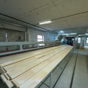 Наша линия распиловки «Крафтер» обеспечивает высокую производительность и точность при обработке древесины. Она позволяет нам производить пиломатериалы с максимальной эффективностью, сохраняя при этом идеальные геометрические размеры для дальнейшей обработки. Выпуск пиломатериалов с данной линии в смену составляет более 200 м³.