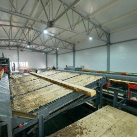 Горбыльная и подгорбыльная доска обрезаются на кромкообрезном станке, а лафетная проходит высокоточный распил. Вся продукция сортируется по категориям, а система аспирации удаляет опилки и мелкие частицы, поддерживая чистоту в производственном помещении.