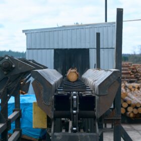 Автоматическая линия сортировки бревна имеет производительность 500 м³ в смену