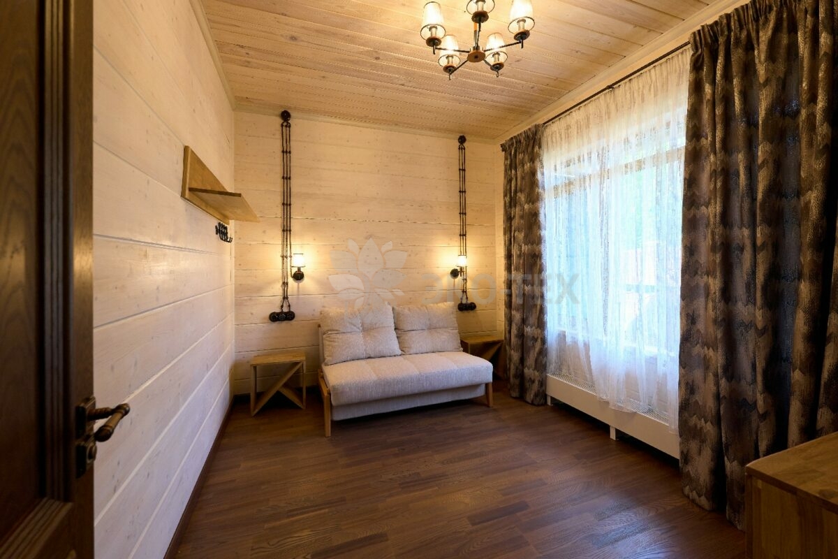 В домах, которые строит компания «Эко -Тех», остекление дополнено живой естественной древесиной архангельской сосны.